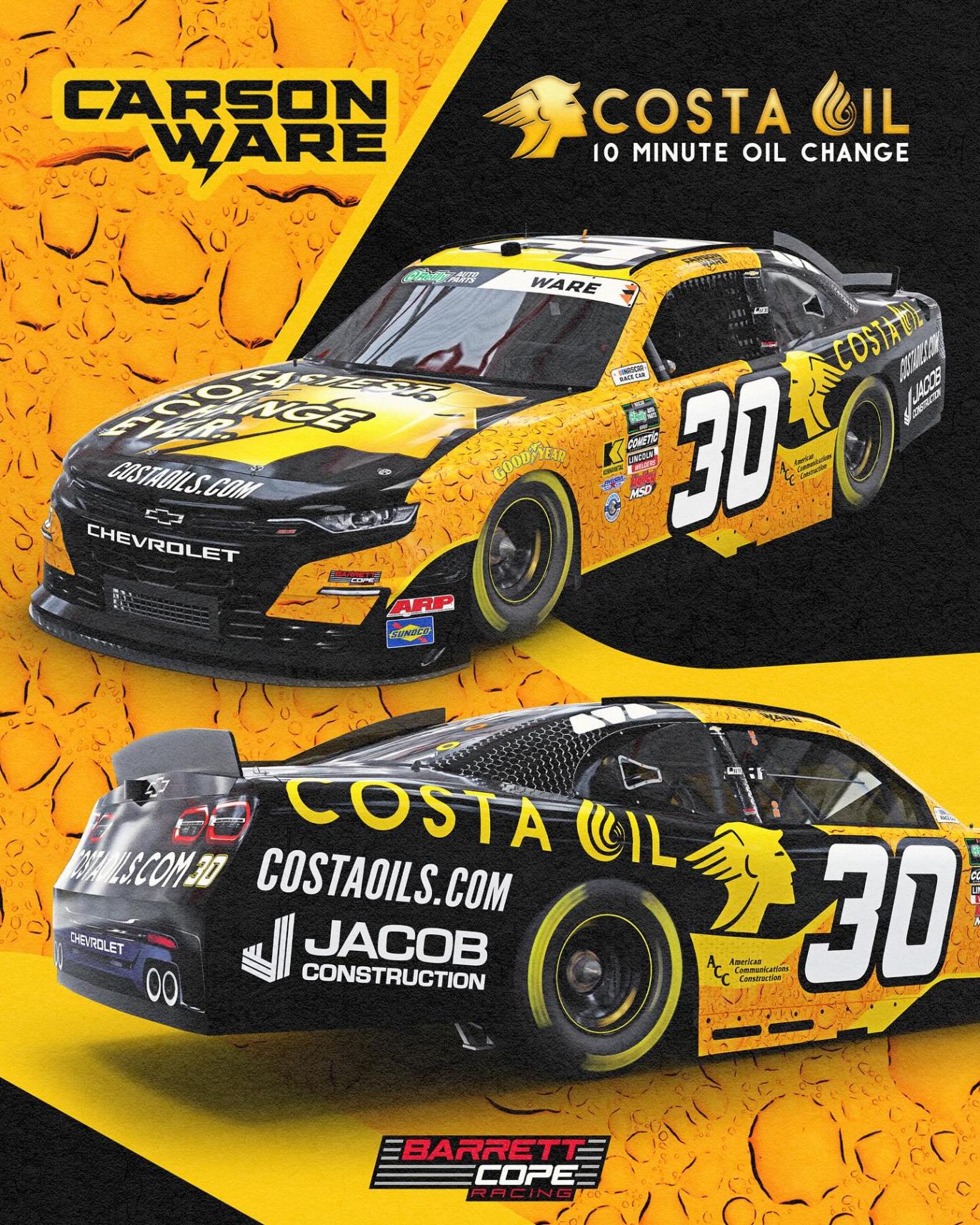 DAYTONA BEACH, Fla. - Michimich -- Costa Oil – 10 Minute Oil Change announced today that it will serve as the primary sponsor for driver Carson Ware in the United Rentals 300, taking place at the legendary Daytona International Speedway. The race is scheduled for 5:00 p.m. ET and will challenge drivers across 120 laps spanning 300 miles at the most recognizable track in American motorsports.