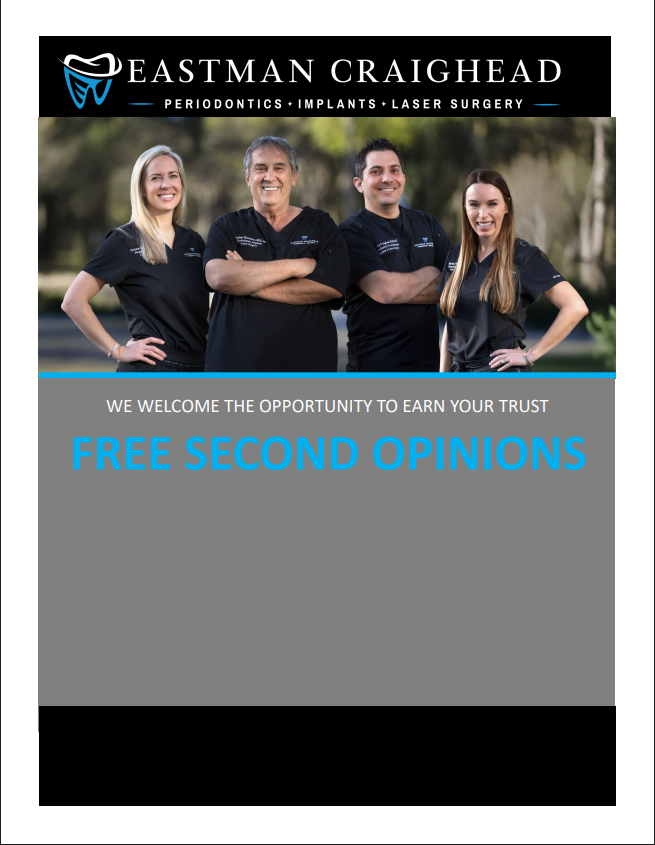 To help patients make informed treatment choices, Eastman Craighead Periodontics offers free second-opinion consultations. Patients can bring an existing treatment plan for review, during which the team discusses options, evaluates costs, and recommends minimally invasive solutions when appropriate.