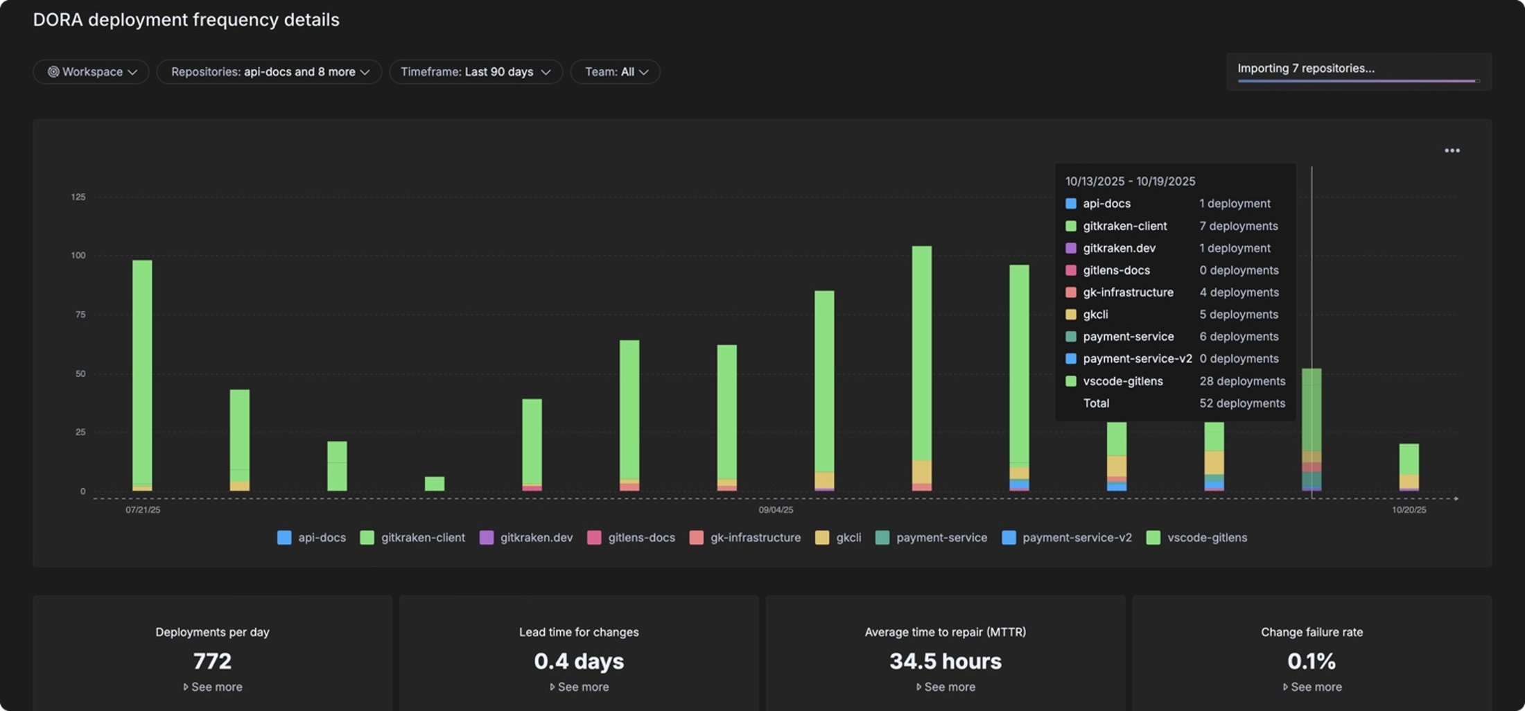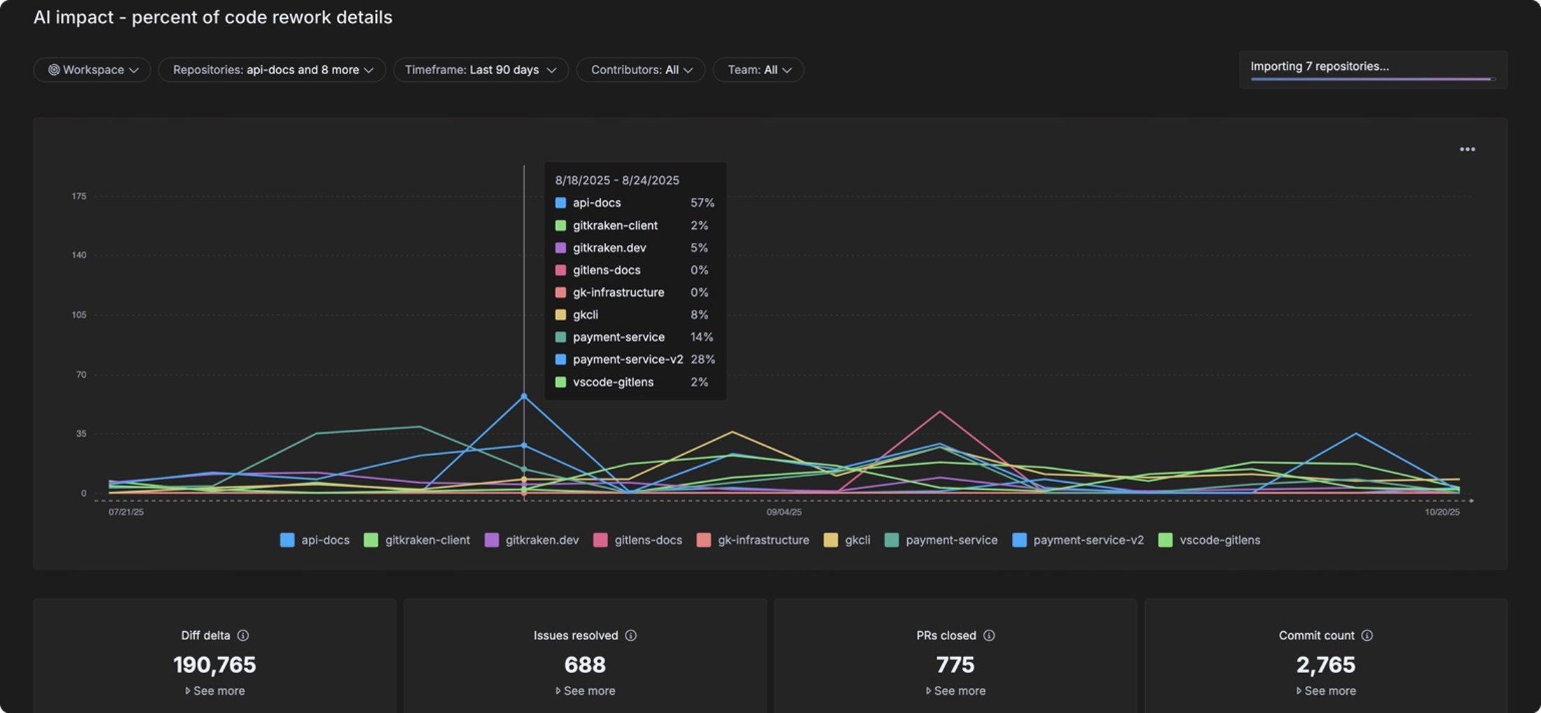 "GitKraken Insights transformed how we understand engineering performance," said Guido Patanella, CTO at Lansweeper. "We can see which AI tools improve delivery performance and which areas need attention. It pays for itself by helping us optimize development."