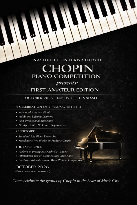 NASHVILLE, Tenn. - Michimich -- Nashville, TN — The Nashville International Chopin Piano Competition is proud to announce the launch of its First Amateur Edition, to take place in October 2026 in Nashville, Tennessee.