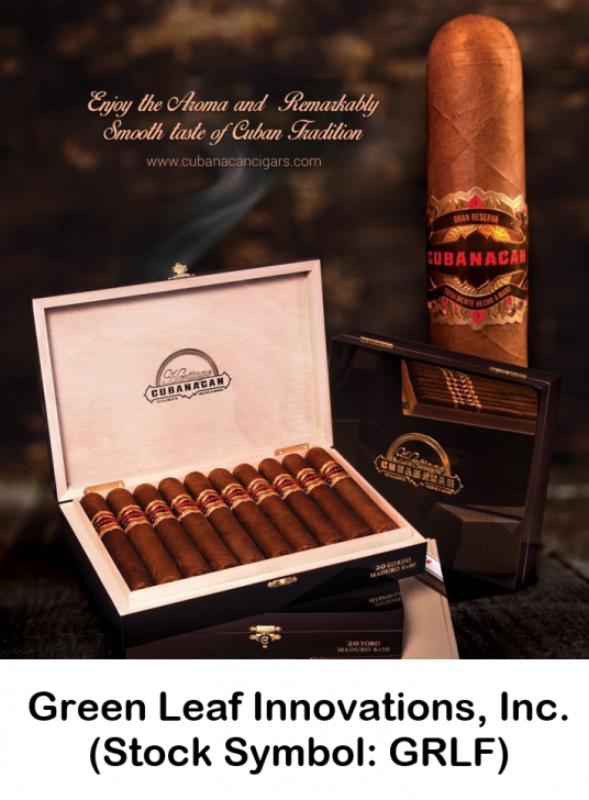 Green Leaf Innovations, Inc. (Stock Symbol: GRLF) is a Florida corporation and emerging growth company engaged in the marketing and distribution of handmade premium cigars. GRLF strategically imports and distributes premium cigar brands manufactured in Estelí, Nicaragua, led by the Mederos family-third-generation Cuban cigar makers with heritage dating back to the 1800s in CUBA. The GRLF portfolio includes CUBANACAN, MEDEROS, TABACALERA SERRANO, MAL.CRI.AO, and COCOA brands.