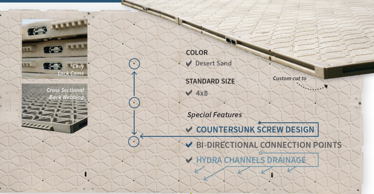 The DuraTrac Group is renowned for its patented design flooring systems, which allows for rapid installation and extreme load bearing capacity while protecting the underlying turf from small events to large stadium coverage. The flooring is specifically engineered to withstand the rigors of heavy foot traffic and heavy equipment, making it the ideal companion for Shelter Structures' expansive clearspan tents.