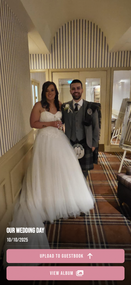 There's no downloading, no logging in just scan, snap, and share. Every photo appears in real time, so newlyweds can relive the best moments of their day before the confetti's even been swept up.