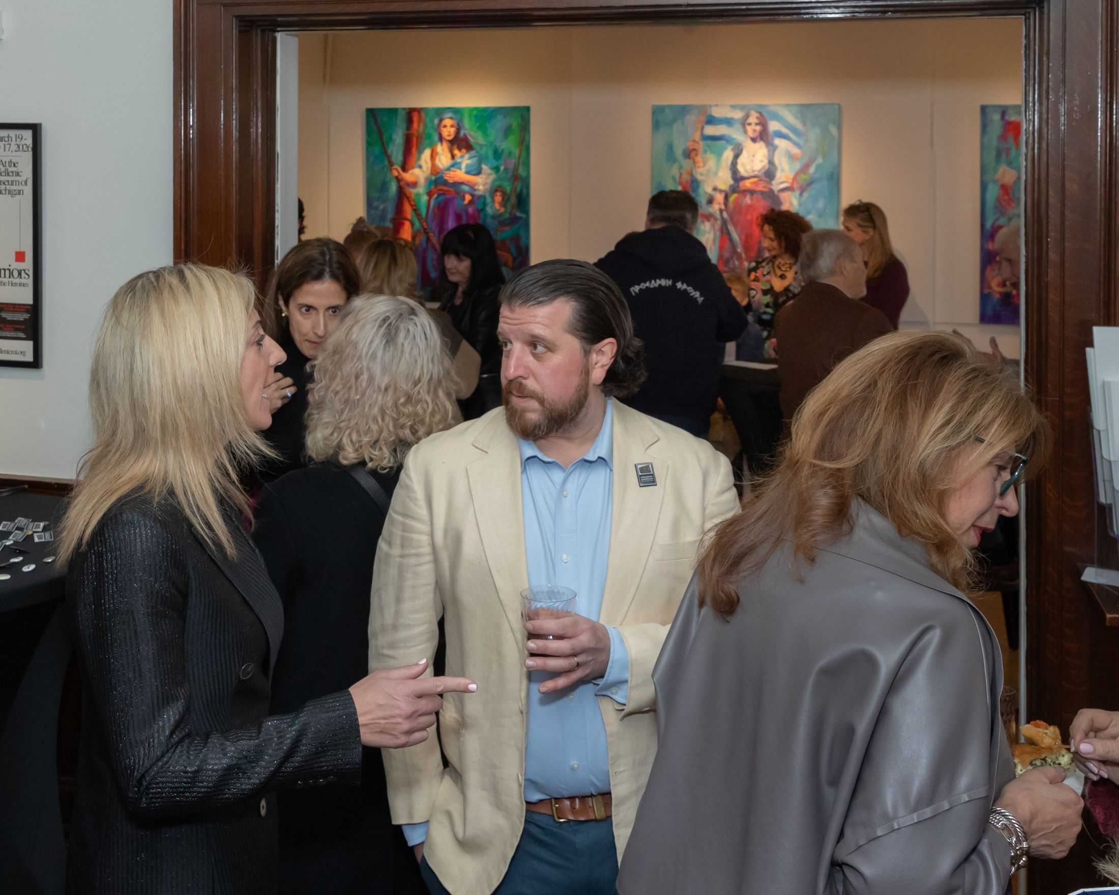 The exhibition brings together women's history, Greek history, art, and women's empowerment, capturing strength and resilience across generations and cultures. Its wide-reaching impact was reflected in the evening's distinguished guests, including Consuls General of Greece Emmanuel Koubarakis and Georgia Tasiopoulou; representatives of the Romanian Consulate; Andreea Bordeianu, Ph.D., of the American Romanian Cultural Society of Detroit; and Cristina Stamatin, representing Tangent Club USA, an international women's organization; and Barbara Heller, director and conservator, special projects at Detroit Institute of Arts. The evening also drew artists, influencers, and community members from across the greater Detroit area, all coming together to celebrate the opening. To date, the Museum has welcomed visitors from Illinois, Texas, Pennsylvania, Florida, New York, and even South Africa.