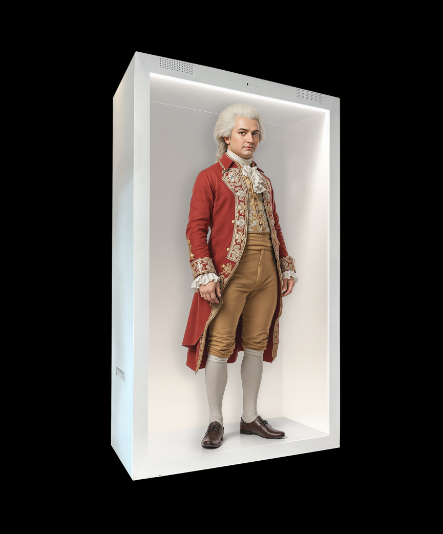 Ailias develops full-size conversational holograms that allow visitors to ask questions and receive historically grounded responses from figures drawn from history, science, and culture. Unlike scripted interactives, these encounters are dynamic. Each conversation evolves differently, shaped by the visitor's curiosity, background, and perspective.